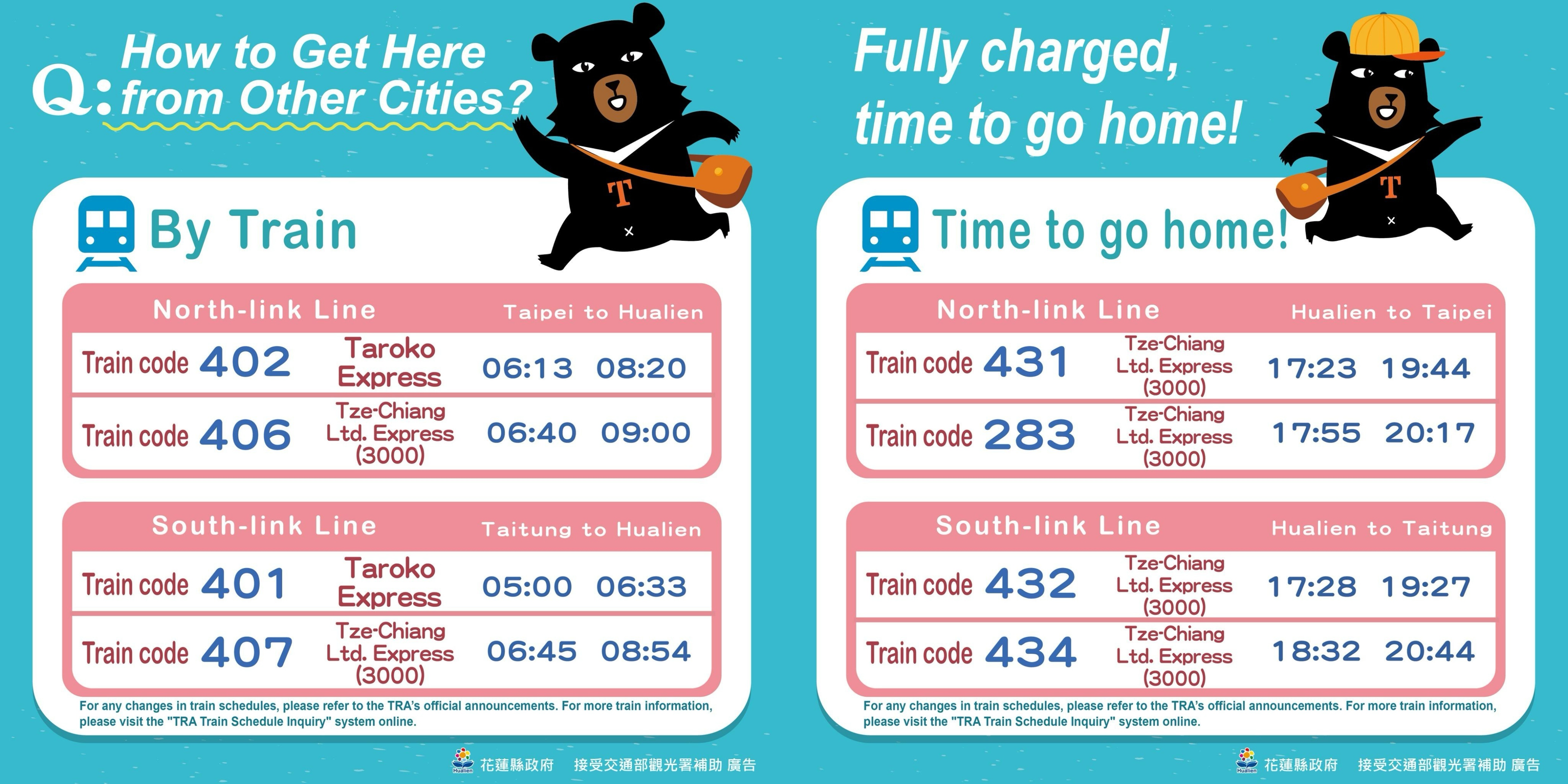 - Train schedules may vary. Please check the latest times on the “TRA Train Timetable Inquiry” system.