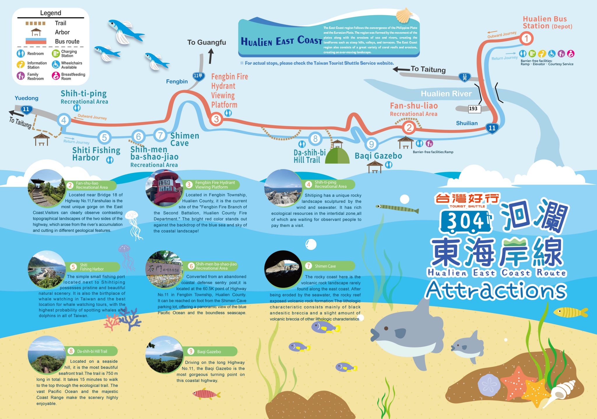 Walking on the long platform NO.11 line, the Basaki Gazebo can be said to be the most beautiful "turning point" on this road. When driving through the hairpin bend here from Hualien City, the scenery you see changes from the emerald green mountains and forests on both sides to a vast Pacific Ocean. It is enough to make people forget the hard work along the way. To the south, you can also overlook the top of Dashibi Mountain on the south side of Isozaki Bay.
